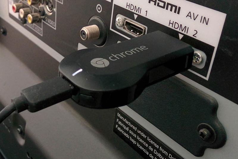 No home theater, o Chromecast tem grande utilidade: pode-se conectar o acessório diretamente no projetor (tanto HDMI quanto USB), ou, melhor, no receiver. Neste caso, o sistema passa a reproduzir a trilha Dolby Digital/Digital Plus 5.1 das séries e filmes transmitidos pelo Netflix e o áudio estéreo do Spotify, do Google Music e dos clipes do Vevo.