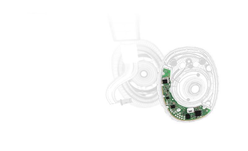 Um soquete de 3,5mm para uso do fone com fio, um USB 3.0, um led multicolorido que indica os diversos estados do fone e um microfone integrado para uso em chamadas telefônicas complementam o sistema.