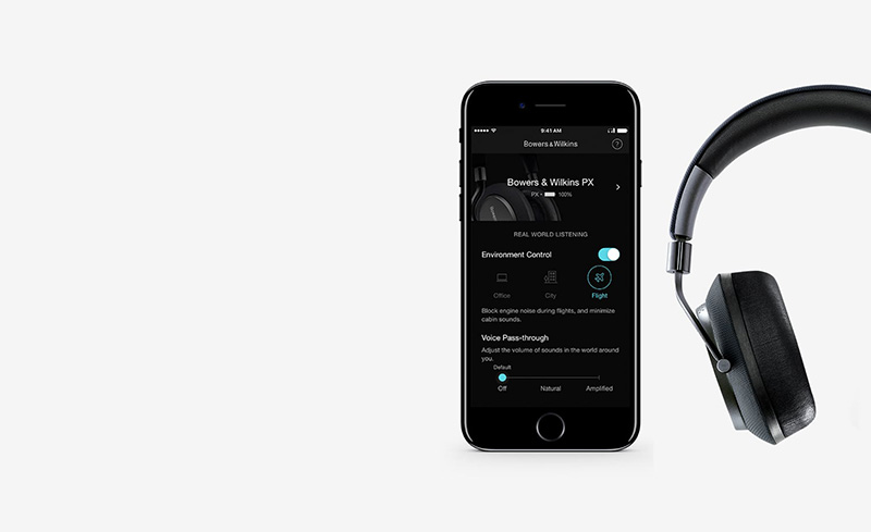 O conceito tecnológico “Real World Listening” da B&W tem como pilares o “Environment Filter” (EF), nome pomposo para seu sistema de cancelamento de ruídos; o “Voice Pass-through” (VP), que permite escutar uma pessoa ou um aviso de segurança sem ter que retirar o fone da cabeça; e um sensor de proximidade.