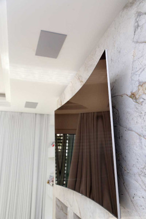 As soundbars são todas do mesmo modelo: cada ambiente da casa tem um controle de som independente.