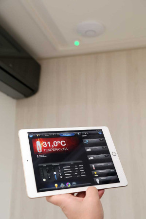 Outra vantagem da automação: praticidade para acionar os aparelhos de ar-condicionado da casa.