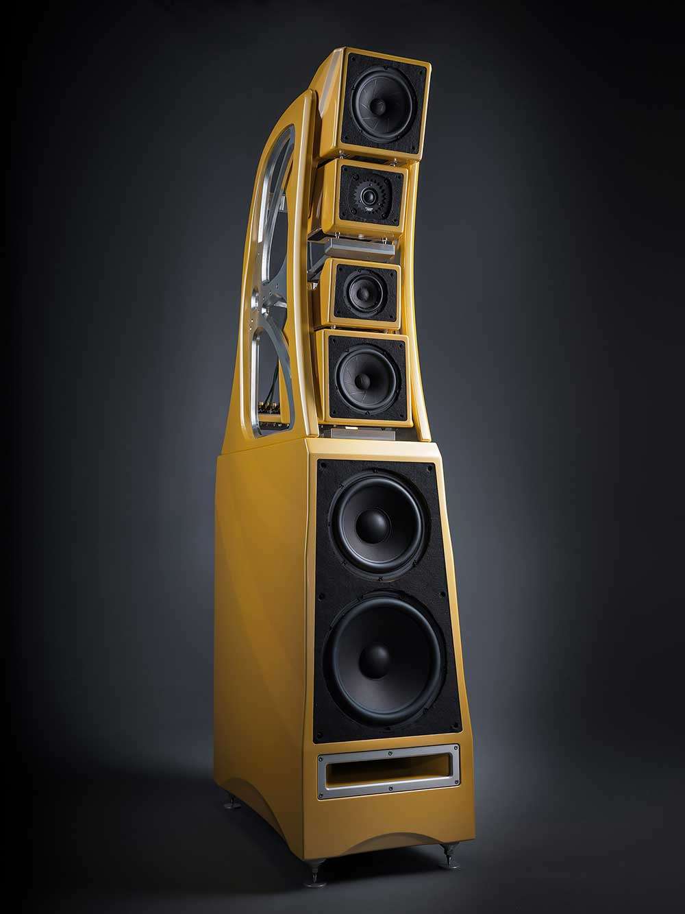 Chronosonic XVX – Torre de 187cm inspirada na clássica WAMM Master, com nova geometria de seus 4 falantes, que utilizam a liga metálica Alnico (alumínio, níquel e cobalto).