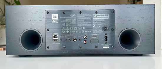 Como o projeto da L42ms foi concebido para ser um sistema de áudio de duas vias em cada lado do gabinete, inclusive com seus respectivos dutos de ar, na prática é como estar diante de um par de bookshelf ultracompactas.