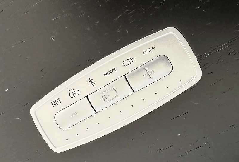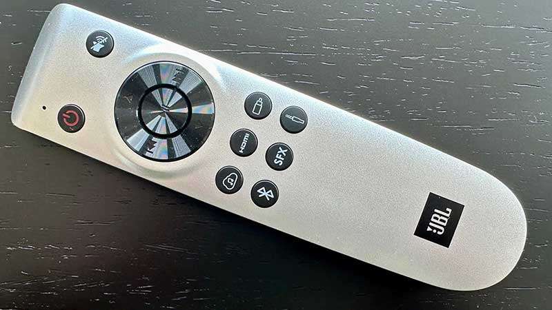 O controle remoto Bluetooth que vem com a caixa JBL é muito simples, e raras vezes foi usado em nossos testes. A L42ms é realmente muito fácil de operar, com poucas teclas de reprodução sinalizadas por led no topo do gabinete. Liga-se assim que começa a transmissão por streaming e entra em standby na ausência de sinal.