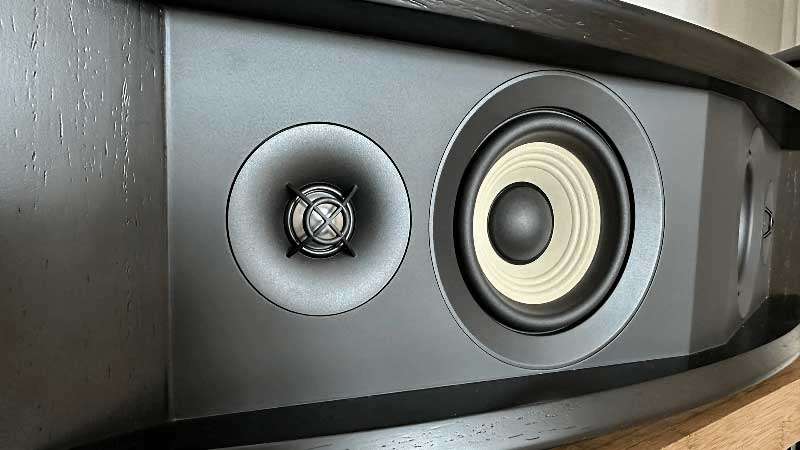 Seu desenho horizontal, com defletor ligeiramente angulado, possibilita uma imagem estéreo convincente em até 1,5m de distância. Essa característica ficou bem evidente com o britânico Seal – e seu backing vocals – cantando Kiss From a Rose. Só não foi possível um palco sonoro 3D mais amplo e preciso, devido às limitações físicas da caixa.