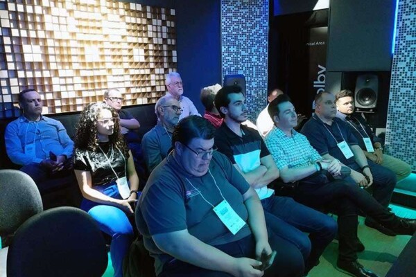 Foi um dia inteiro de imersão nos sistemas desenvolvidos pela Dolby. Além de uma apresentação técnica sobre o padrão Dolby Atmos e as formas corretas de instalação e ajuste, os participantes fizeram um tour guiado pelas salas que a empresa mantém como laboratório de pesquisas e testes.