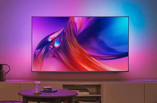 Aqui, o principal diferencial é o efeito Ambilight por trás da tela. Com Google TV, é compatível com conteúdos Dolby Vision e HDR10+, além de poder ser acionada via Alexa. Também pode ser adquirida em 55” ou 75”.