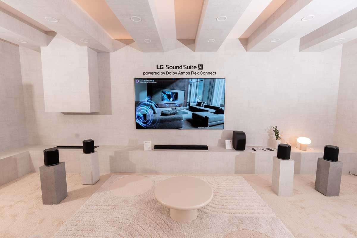 Estande da LG demonstra o sistema de caixas SoundSuite, com o recurso Dolby Flex Connect.
