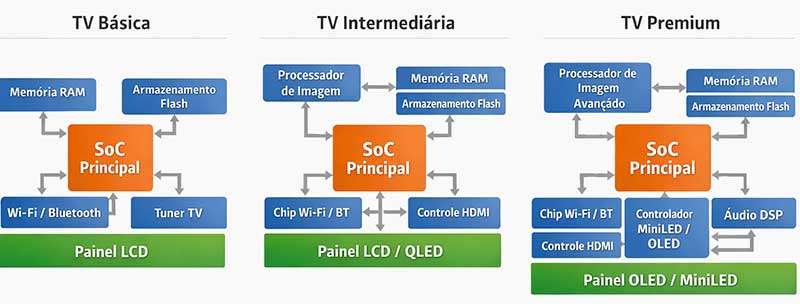 Curiosamente, entre os principais fabricantes a Samsung é a única que também produz chips em larga escala e, por isso, tem condições de absorver melhor a nova realidade. As demais produzem, quando muito, chips do tipo SoC (system-on-a-chip), responsáveis pelo processamento central das TVs, e mesmo assim em quantidades insuficientes.