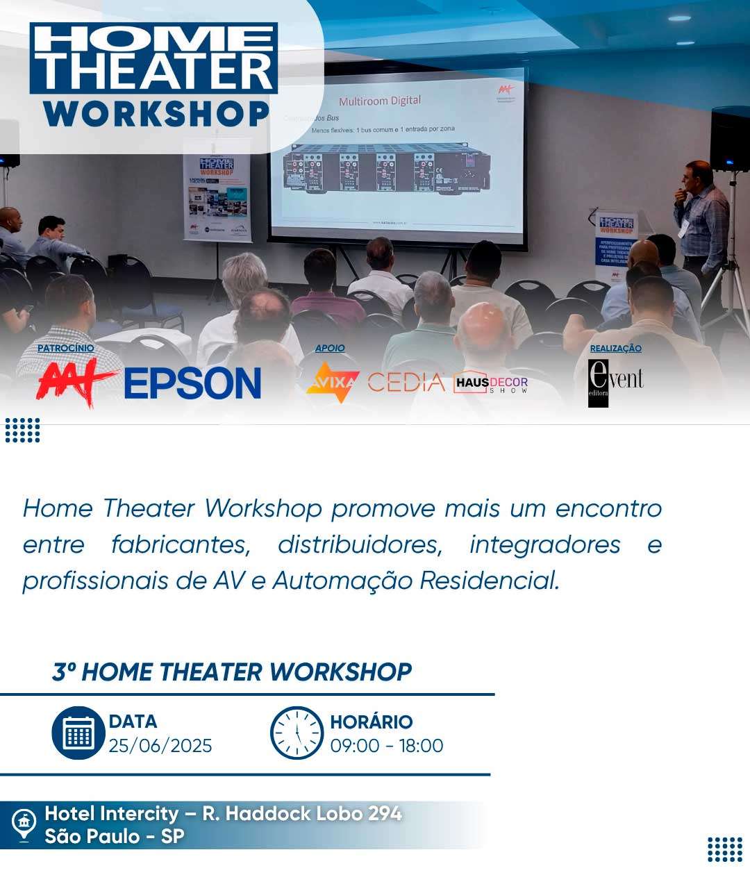 Situado na melhor localização de São Paulo, próximo das estações de metrô Consolação e Paulista, o Hotel Intercity Paulista mais uma vez será palco do Home Theater Workshop.